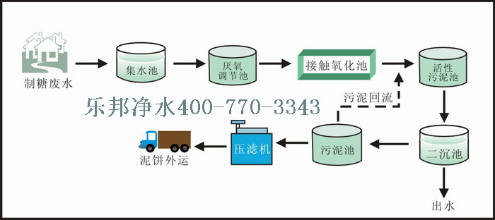 制糖工業(yè)廢水處理工藝流程: