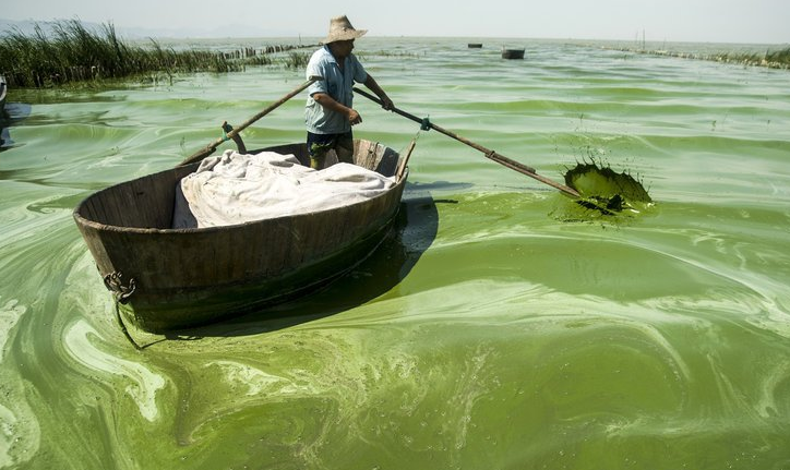 2013年7月19日,安徽巢湖東半湖藍(lán)藻暴發(fā),雙橋河、柘皋河入湖口、巢湖濕地及孫村、溫村一帶湖岸沿線藍(lán)藻聚集,水體發(fā)出陣陣腥臭,部分水域藍(lán)藻粘稠,幾成凍湖。巢湖管理局環(huán)保處一位負(fù)責(zé)人說(shuō),他們將立即派人去湖邊察看,如果確屬藍(lán)藻暴發(fā),他們將采取相應(yīng)措施,保障市民用水*。